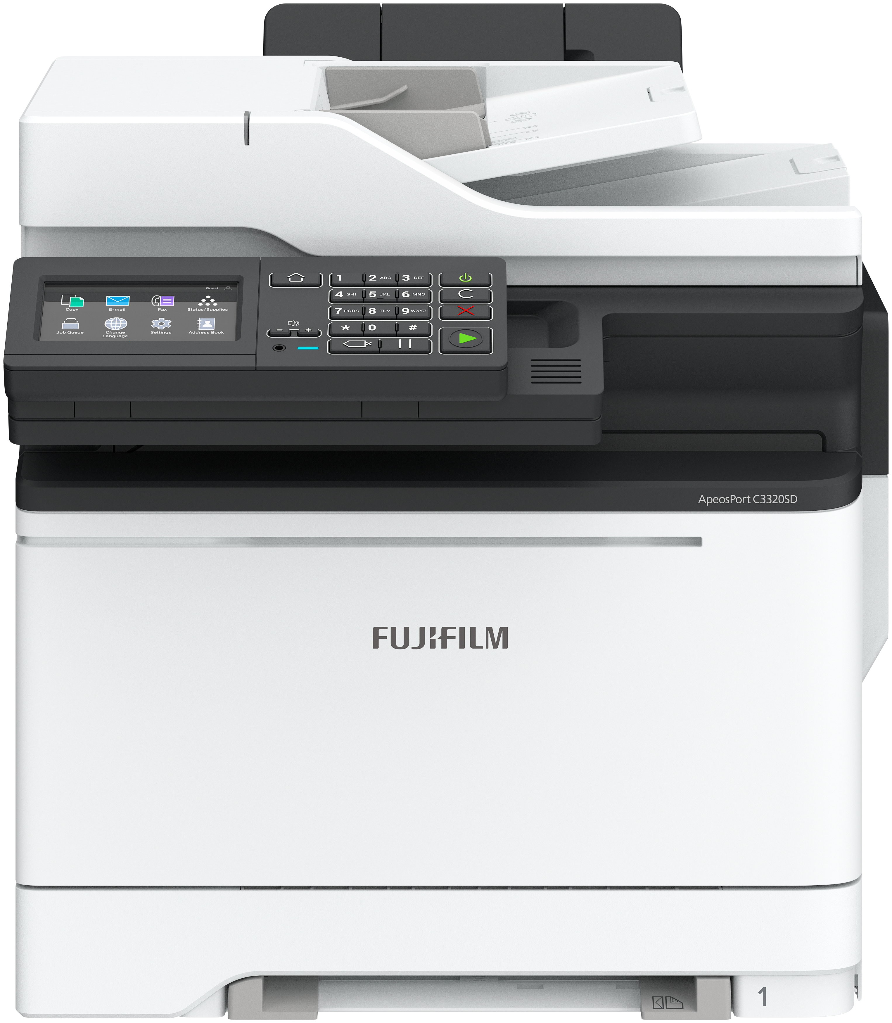 High-speed printing of 38 ppm with a small footprint 1-pass Duplex automatic document feeder supports high-speed scanning...