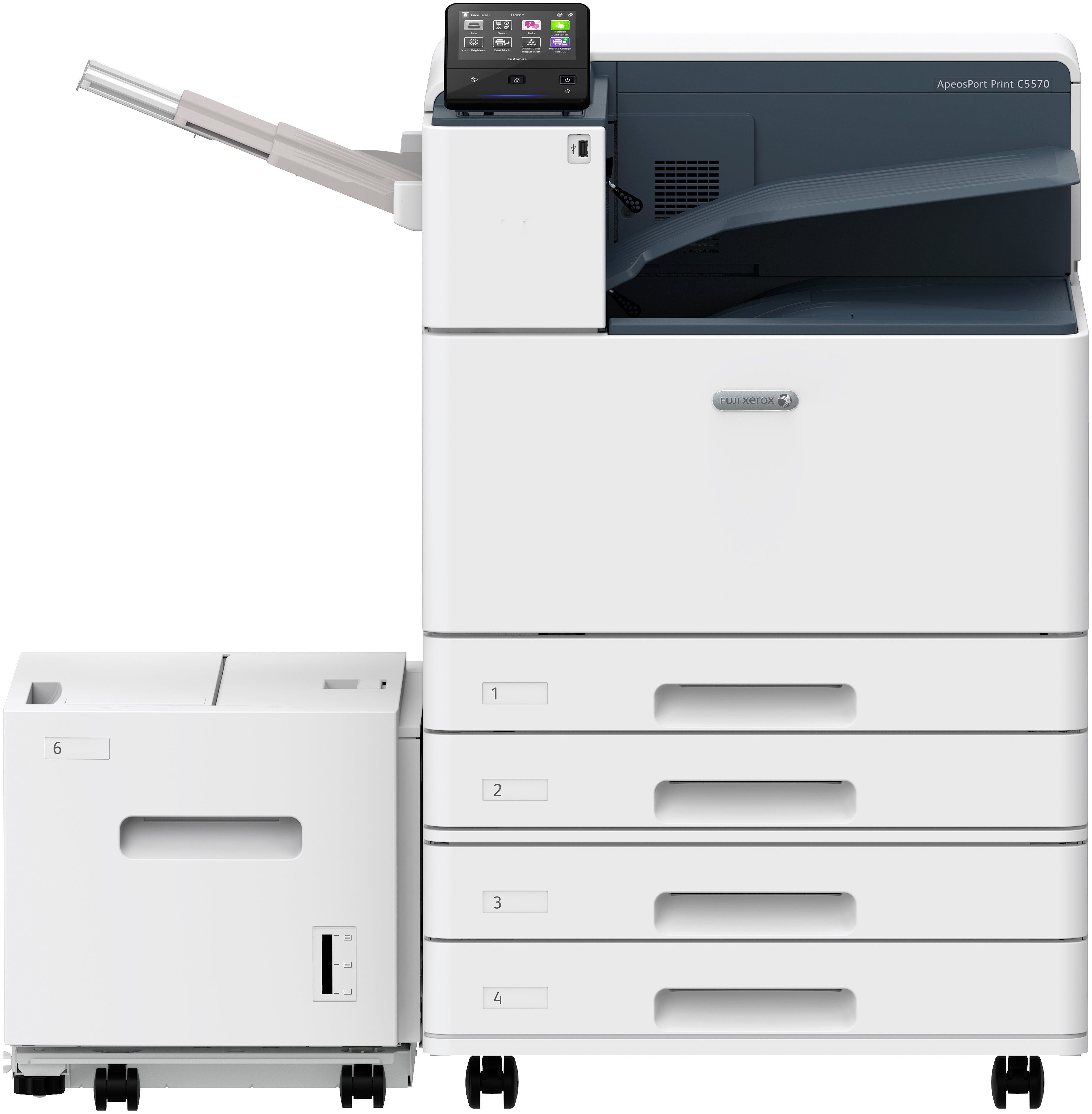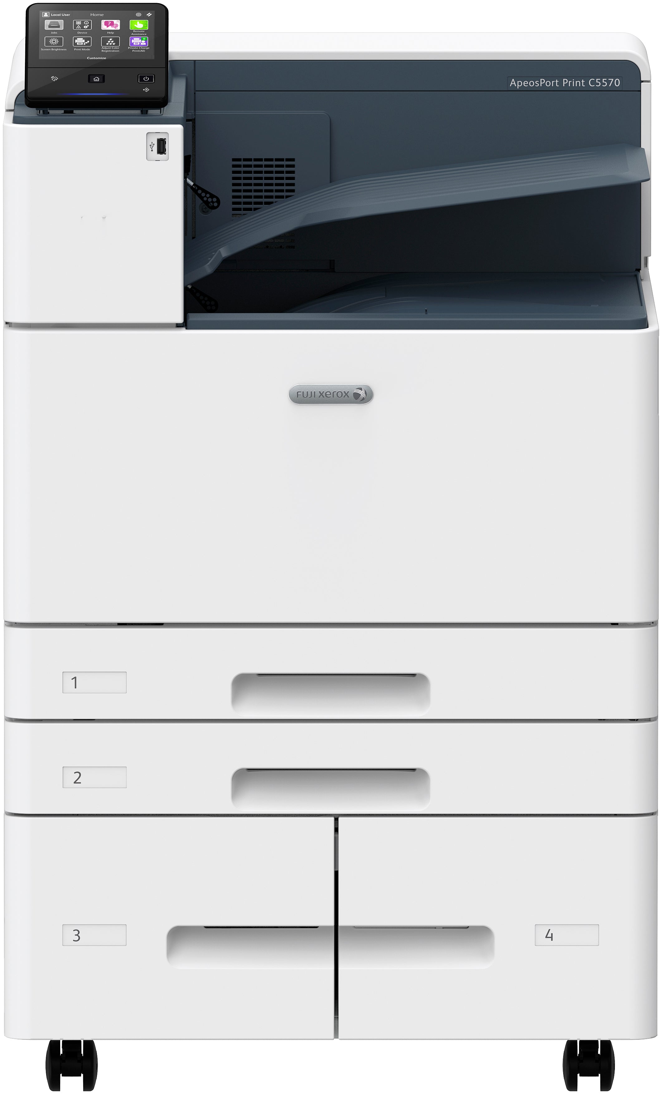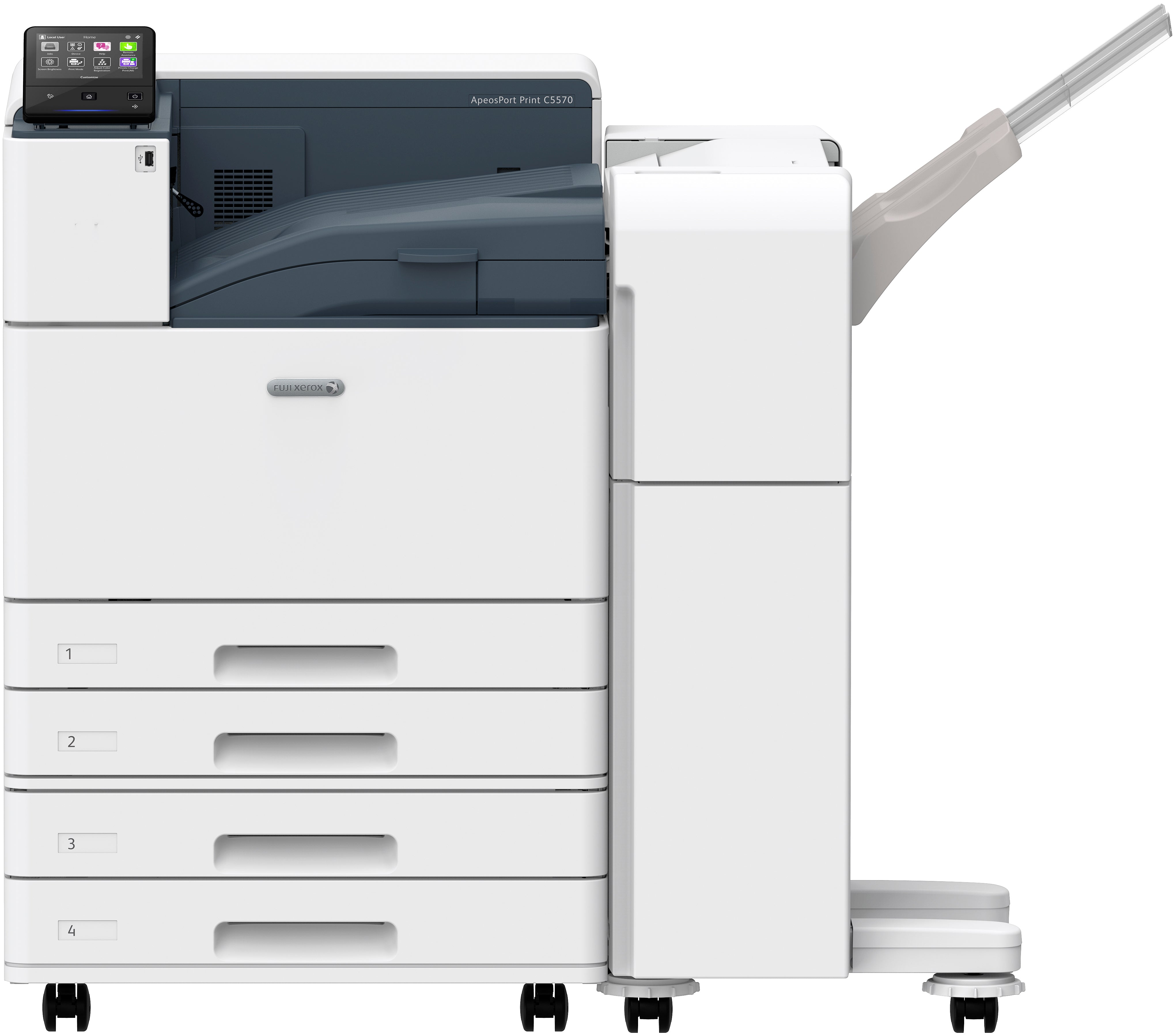 Fast colour printing of up to 38 ppm, with FPOT as fast as 7 seconds Optional 650-sheets...